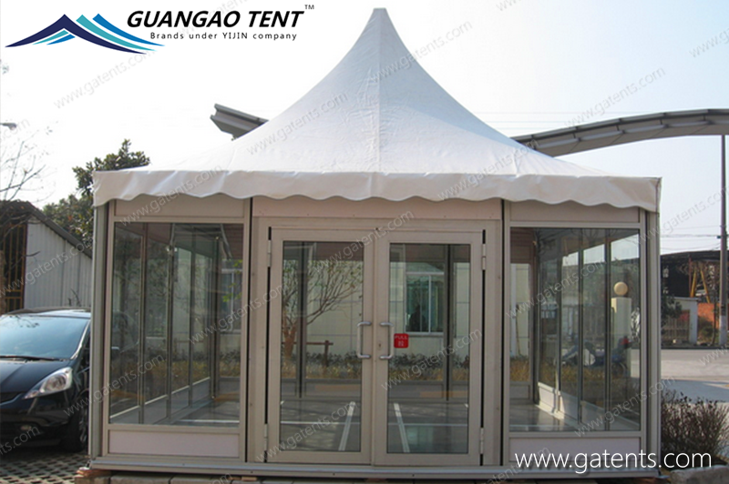 The Pagoda Tent is a new type of temporary building for outdoor activities. The peaked tent is an economical tent, and its main features are that it is light, faster to install than conventional tents, and more economical and practical. It can meet the customer's requirements for the size of the cone-top tent. In particular, the awning cloth made of imported synthetic fibers and three layers of PVC materials is selected. The tarpaulin weighs 650-850 grams per square meter, and its performance fully meets the European and American standards. The frame part is exquisitely processed and handled in accordance with safety standards.