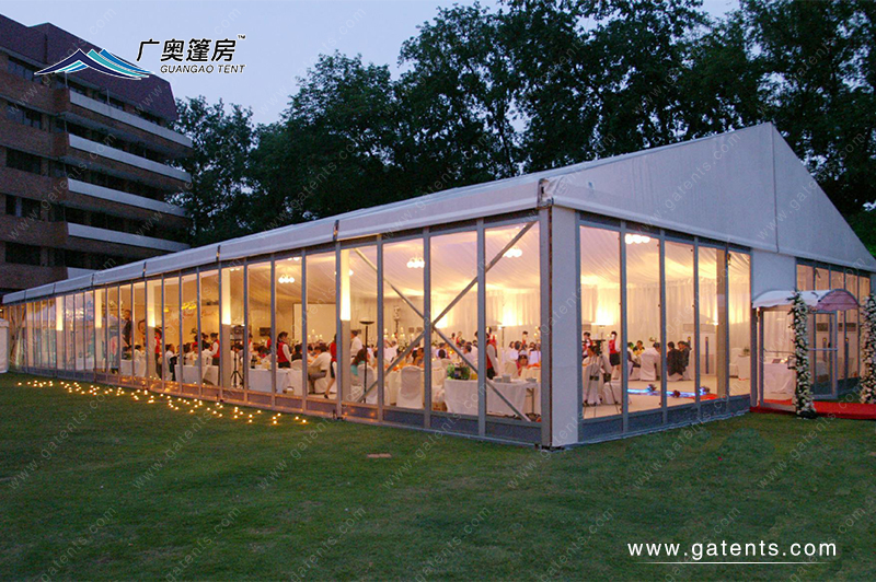 廣奧建造餐廳篷房造型多,包含人字形、拱形、弧形、球形、組合型等等。篷房材料:PVC篷布、鋼化玻璃墻、ABS墻體、高強(qiáng)度純6061-T6鋁合金框架等。使用壽命長達(dá)20多年,室內(nèi)配套齊全,篷房結(jié)構(gòu)穩(wěn)固耐用。