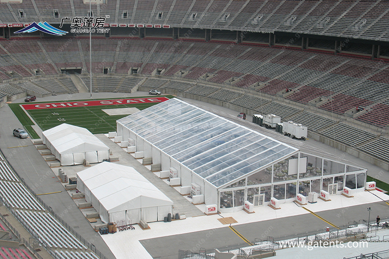 廣奧篷房廠家的體育篷房,完全可方便拆卸,還能在很短的時間內(nèi)可快速安裝,使用壽命長達(dá)20多年,室內(nèi)配套齊全,還能根據(jù)特殊要求,裝上隔斷墻,區(qū)分個個不同用處空間。篷房結(jié)構(gòu)穩(wěn)固耐用,對場地?zé)o限制。